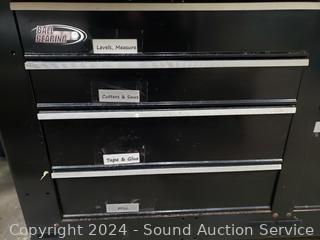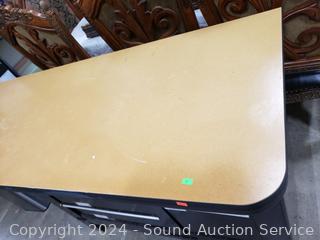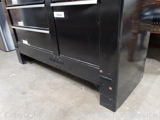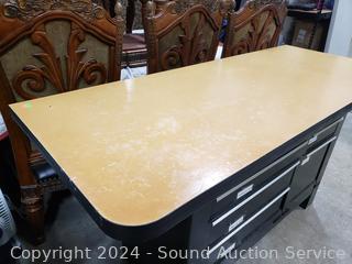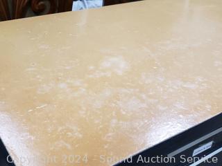 Laminate top, steel base, ball bearing drawer guides. Various scuffs, wear from use. 37" H x 60" W x 24" D.