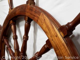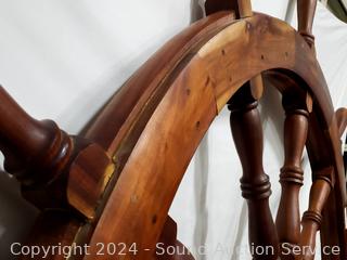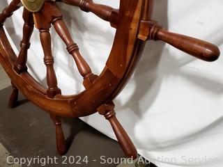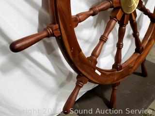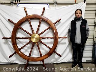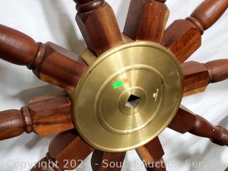 Lot #0008: Huge 6ft Teak? & Brass Ships Wheel