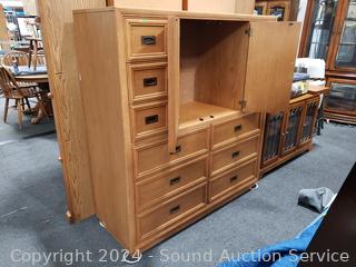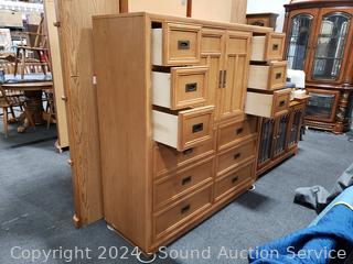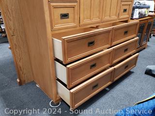 Lot #0004: Oak Stanley Furniture 12 Drawer Dresser Media Cabinet