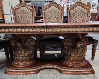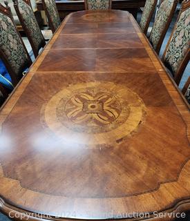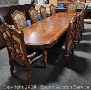 Lot #0002: Ornate Aico California Banquet Dining Table w/10 Chairs