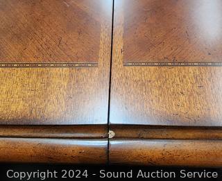 319 Lots including Thomas Aaron Burl, Inlaid Billiards Table w/Rack, Sticks, Ornate Aico California Banquet Dining Table, Aico Signature Series Ornate Hutch, Curio, Buffet, Coaster King Bed, Huge 6ft Teak? & Brass Ships Wheel, Fine Silver Rounds, Futon/Sofa, Copper/Brass Divers Helmet, Arts/Craft/Sewing/Office Supplies, Cafe Tables w/Chairs, Hall Tree Coat Rack, Bar Stools, Paint Supplies, Dyson Vacuum, Table Linens, Vizio 4K Smart TV, Drive Red Collapsible Walker Chair, Antique Sterling Compacts, Native Sterling Turquoise/Jasper Jewelry, 10K/14K Gold Rings, Shark Vacuum, Purses/Handbags/Footwear, Lenox Flatware Set, Waterford Crystal Stemware & Much More!!!