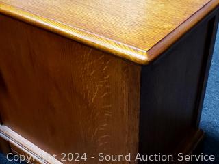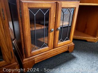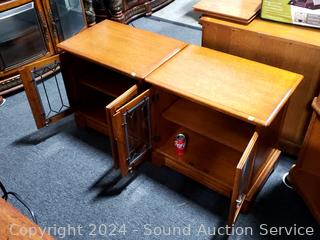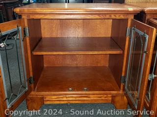 Lot #0014: Pair of Oak Leaded Glass Side Table Cabinets