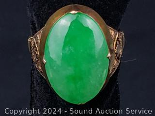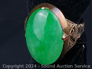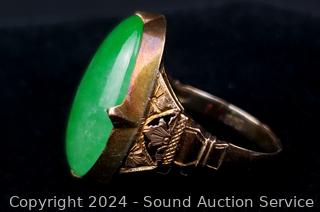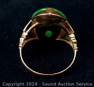 Lot #0074: Vintage 10K Rose Gold & Jade Ring S:7