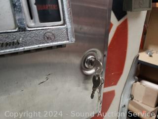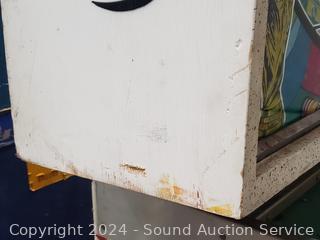 Has power, appears to be functional, some lights not lighting up, can't get the sound to work. 70" H x 30" W x 52" L. As is. Signs of wear from age, use.