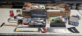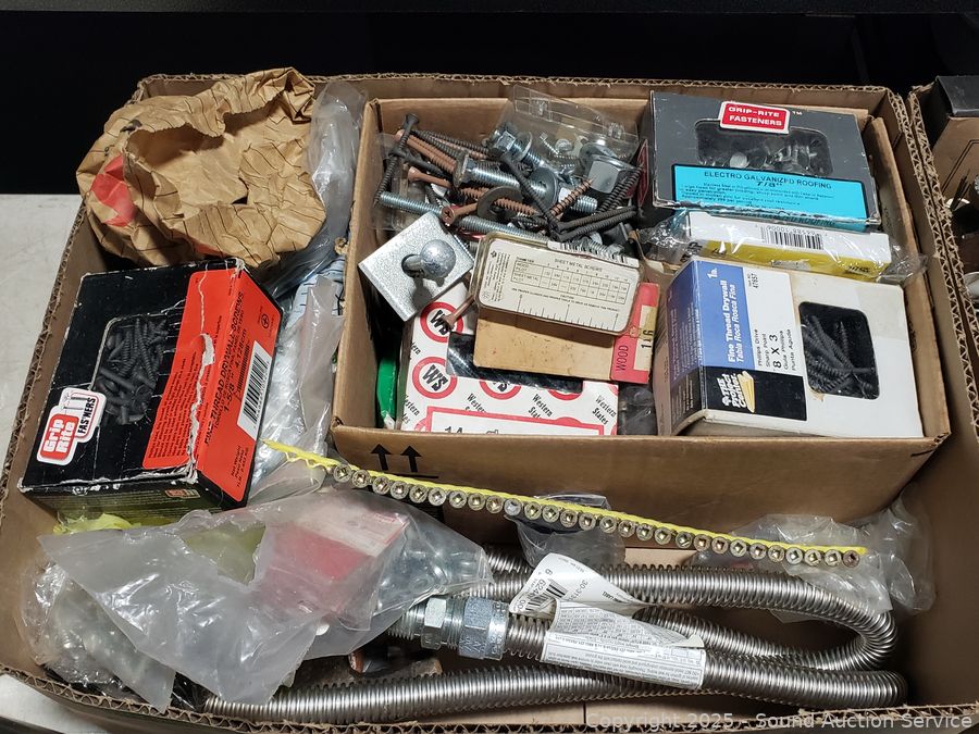 Lot #0282: 2 Boxes of Assorted Tools & Hardware