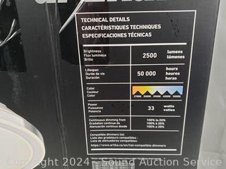 Integrated LED's, 33W, 2500LM, 2700-5000K color. 3.2" x 14.9" Dia. Appears to be functioning as intended.