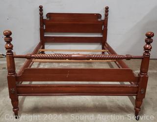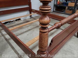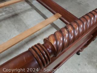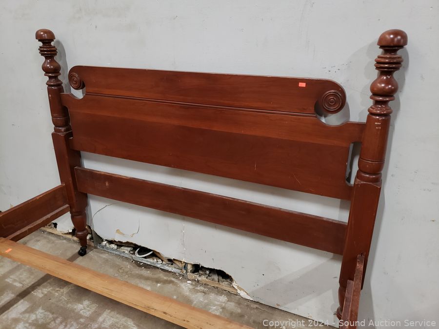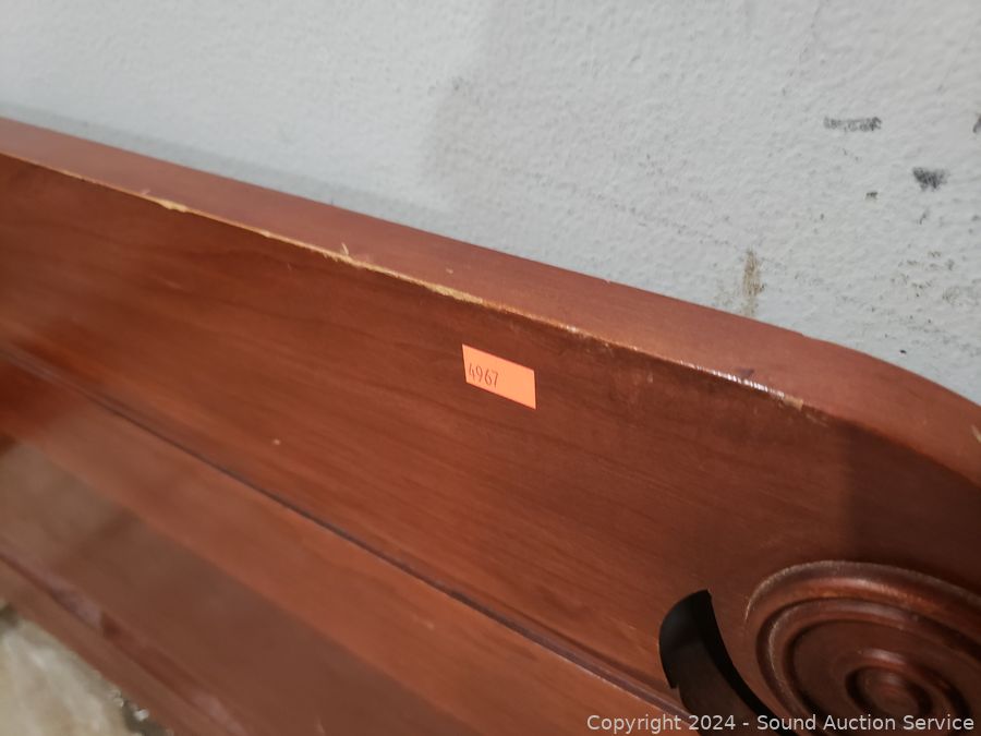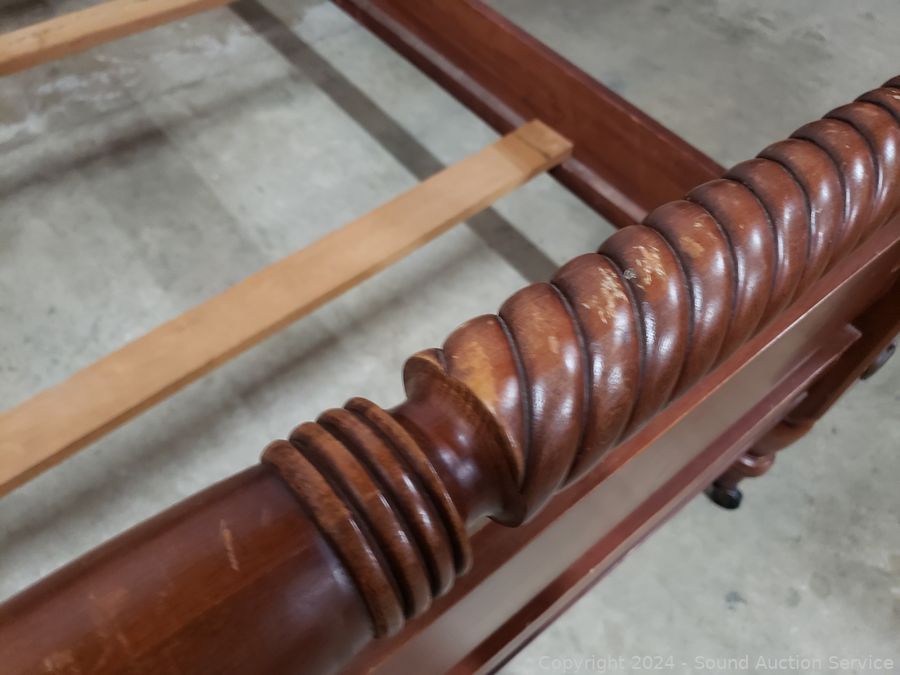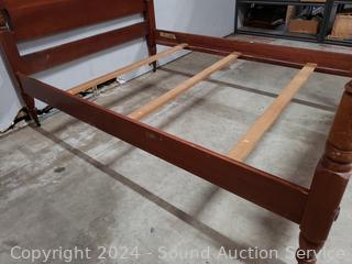 Some scuffed, scratches, wear to finish. Come with rails & slats. Approx. 40" to 46" H x 57" W x 76" long rails.