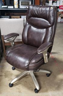 Lot #0309: Serta Brown Vinyl Fully Adjustable Rolling Office Chair