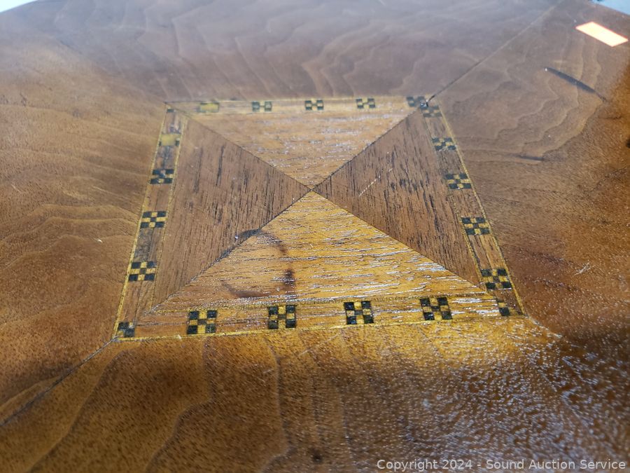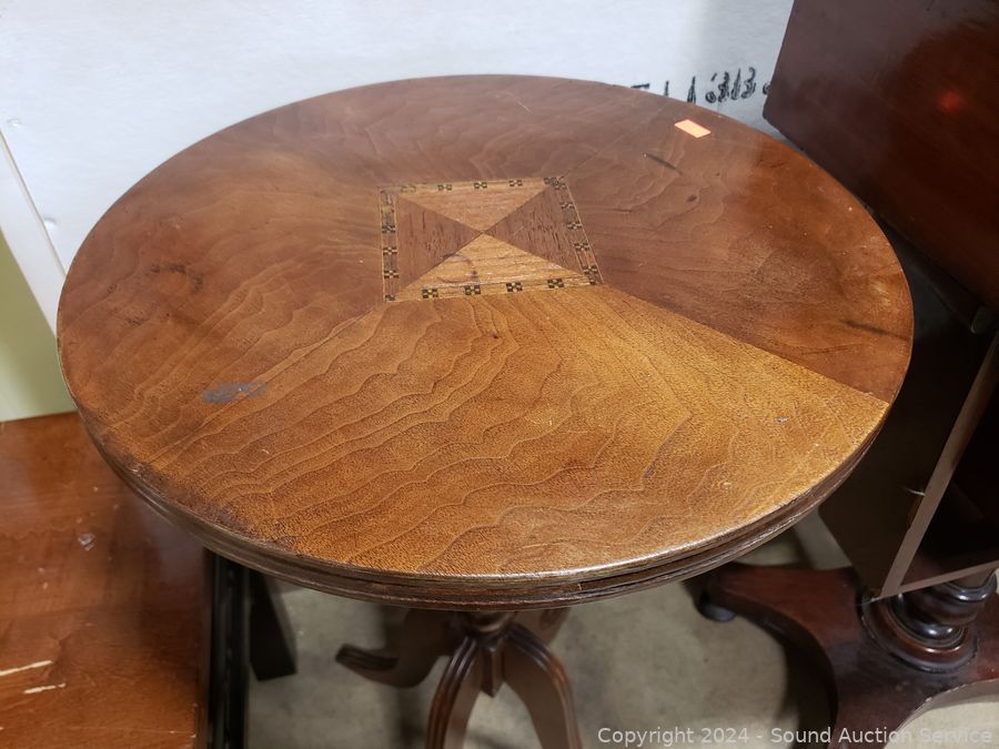 Lot #0054: Vtg Mahogany Round Inlaid Accent Table