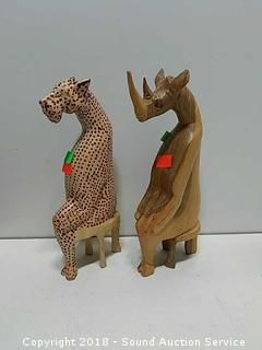 Lot #0021: 14pc. Hand Carved African Wildlife Sculptures
