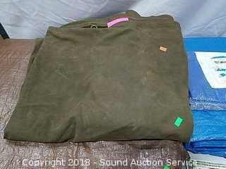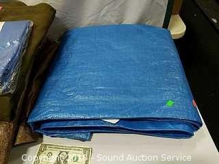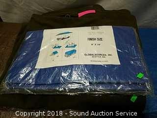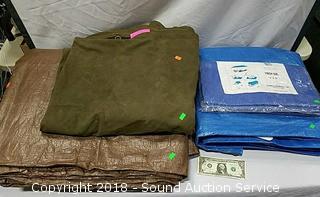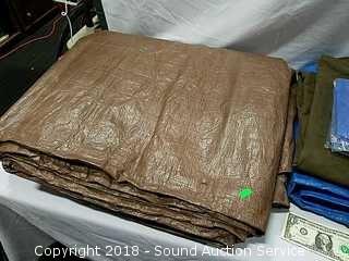 Canvas tarp is 5.5ft x 7ft. Includes: NIP 8' x 10', 6' x 10', and a 28' x 20'.