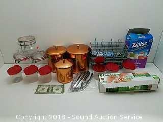 Lot #0056: Canisters, Wire Baskets, Ziplocs & More