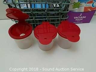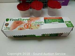 Includes: glass canister set, foodsaver sealed bags, funnel lid containers, and more.