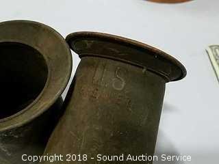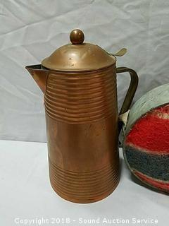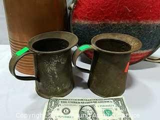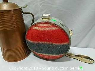 Lot #0142: Copper Carafe, Canteen & Military Tin Mugs