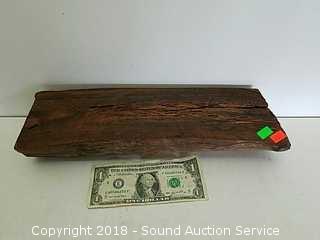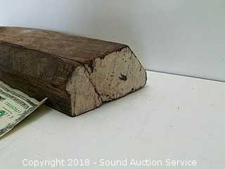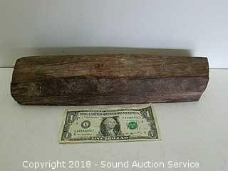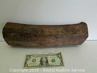 4lbs, 12oz. The center is not all the way petrified. Approx. 13-1/2" long, 3-1/2" x 3".