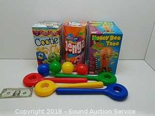 Includes: Cootie, Jenga, and Honeybee Tree.