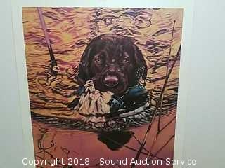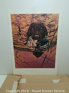 Approx. 25 prints total. All are signed and numbered, #148-172 of 500. An image of a dog fetching a duck from a pond. Approx. 18" x 24".