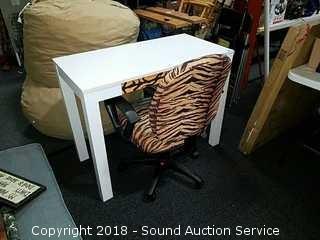 Lot #0090: Modern Tiger Stripe Accent Desk w/Office Chair