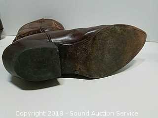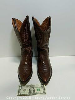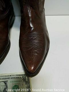 Lot #0009: Nocona Brown Leather Cowboy Boots Size 10