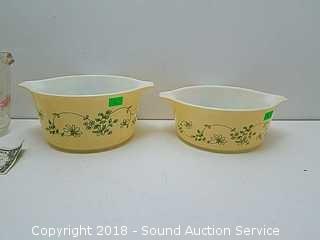 Pyrex bowls are Shenandoah (United States), Wintergreen (Canada) pattern, 1981-1986.