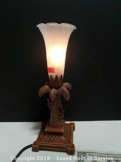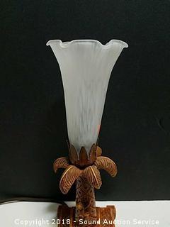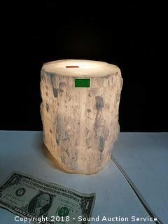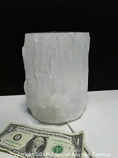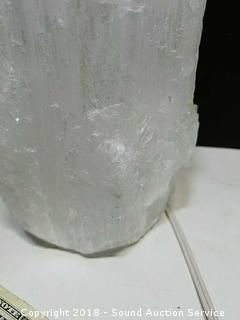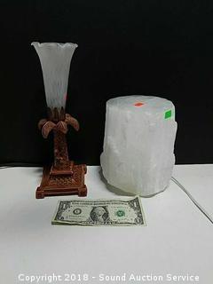 Quartz lamp looks to be carved out of a solid chunk of quartz. Both are tested, work. Fluted lamp is approx. 10" tall. Quartz lamp is approx. 7" tall, 5" diameter.