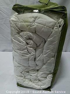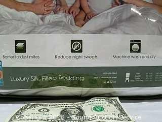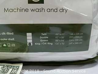 Approx. 106" x 96". 100% silk filled. Comes in original packaging. Refer to photos for more information.
