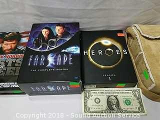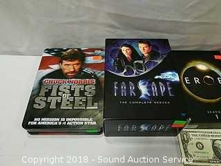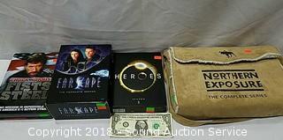 Includes: Complete series of Northern Exposure, comes in a nice bag, Heroes Season 1, Complete series of Farscape, and Chuck Norris Fists of Steel.