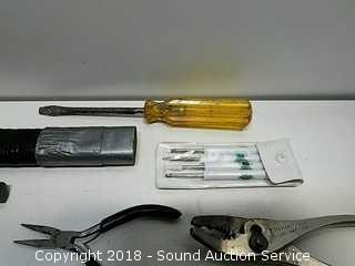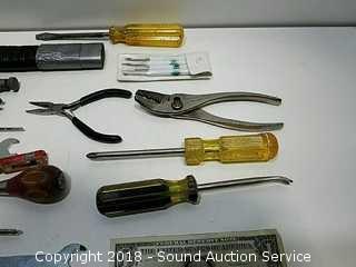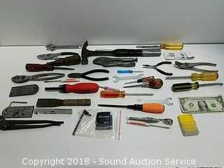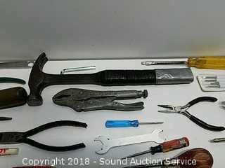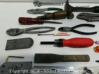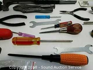 Includes: hammers, screwdrivers, pliers, crescent wrench, vise grips and more.