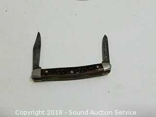 Includes: leather checkbook, and Old Western folding pocket knife.