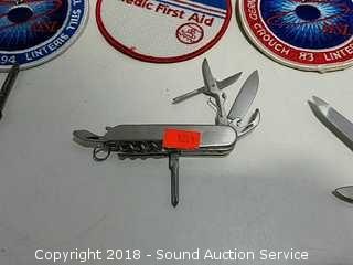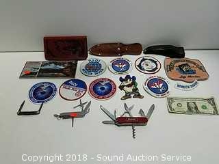 Lot #0016: Various Patches, Leather Sheath, Multi-Tool & More