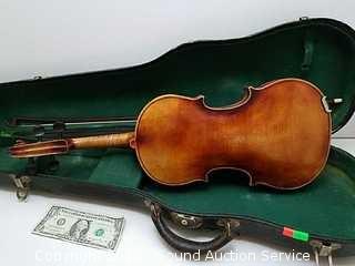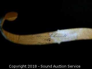 Violin comes with case, has tag on inside marked "Otto Schmidt, 1937, hand made copy of Antonius Stradivarius, Germany".