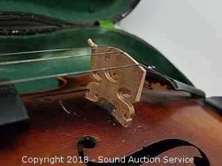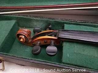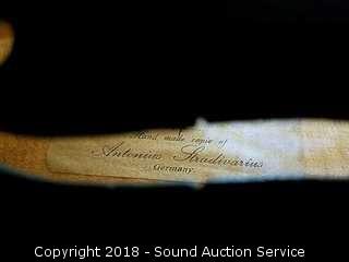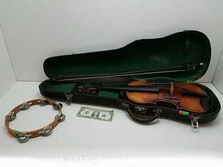 Lot #0078: Vtg. Stradivarius Copy Violin w/Bow & Tambourine