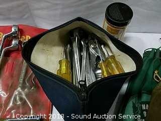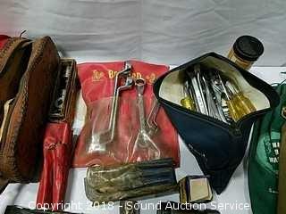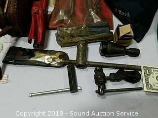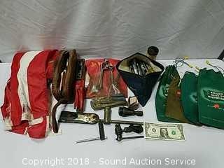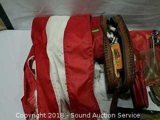 Lot #0252: Weathered American Flag, Bank Bags, Tools & More