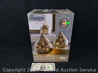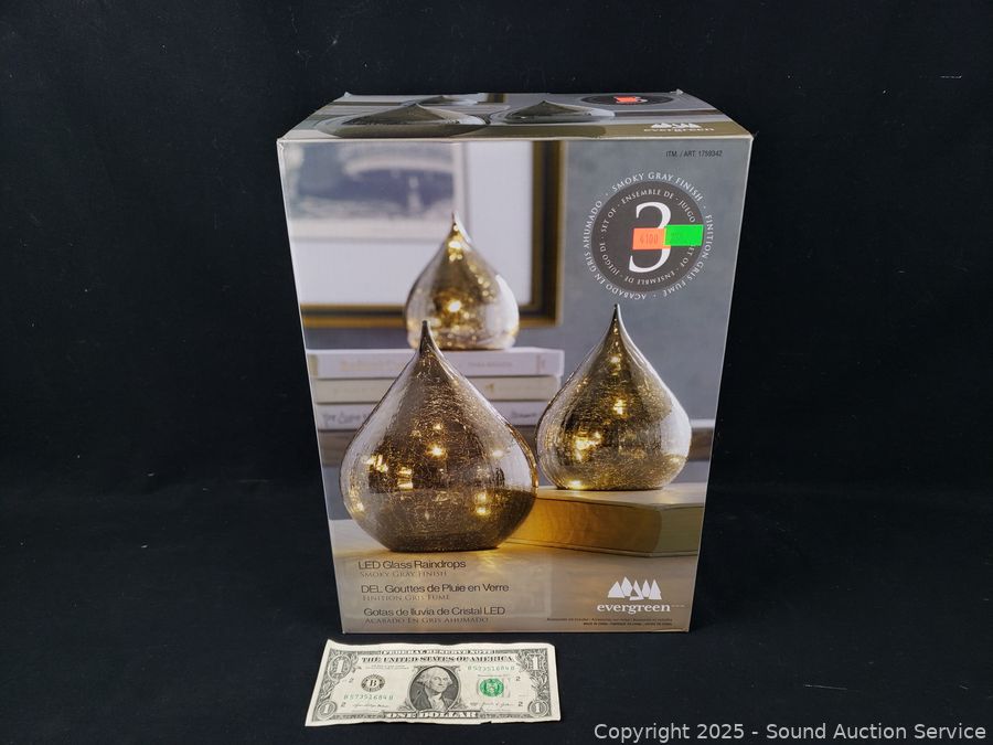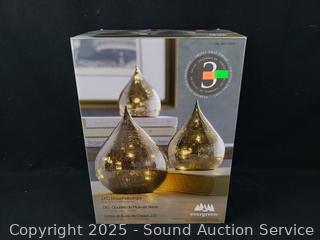 Lot #0234: 2 Evergreen LED Smoky Gray Crackle Glass Raindrop Lights