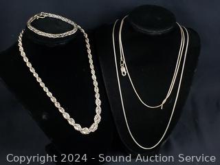 Lot #0051: 3 Sterling Chain Necklaces & Bracelet