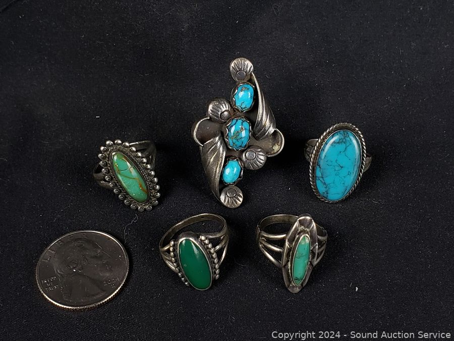Lot #0062: 5 Native Turquoise & Sterling Rings S:6|6.5|7