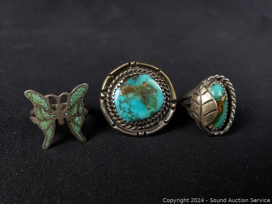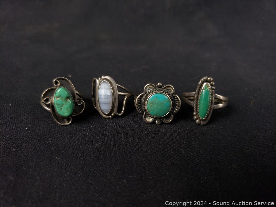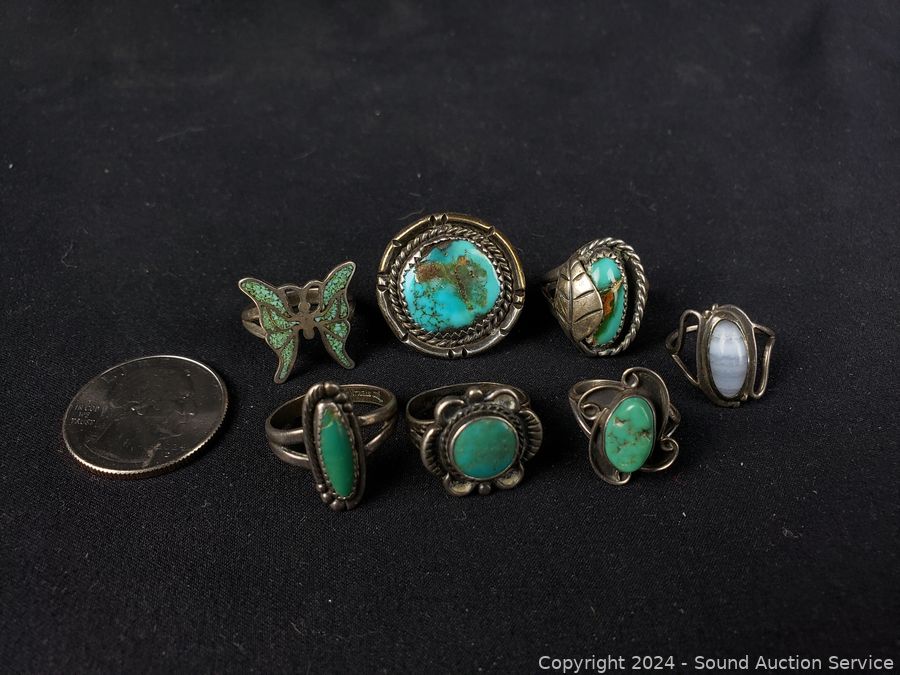 Lot #0057: 7 Native Turquoise & Sterling Rings S:3|4|5|6