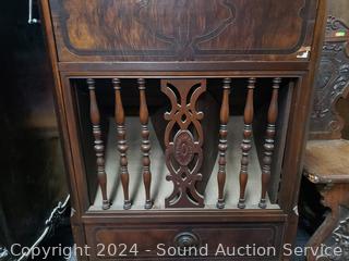 319 Lots including Antique Victrola & Brunswick Phonograph Record Players, Rare Mid 19th Century Rosewood Etagere/Canterbury, Asian/Oriental Cabinets/Chests, Cherry Curio Cabinets, Concrete Child Garden Statue, Vintage Quartersawn Oak Granite Top Vanity Wash Station, Shoe Rack, Assorted Jewelry, Watches, Fine Silver Rounds, Fadi India Sterling Ruby Jewelry, Native Mohave Turquoise Jewelry, Assorted Hobby Tools, Hand Tools, Mid-Century Lighted Oak Hutch, Home Improvement, Rugs, Footwear, Kitchen Cookware, Household Goods, Personal Hygiene Products & More!!!