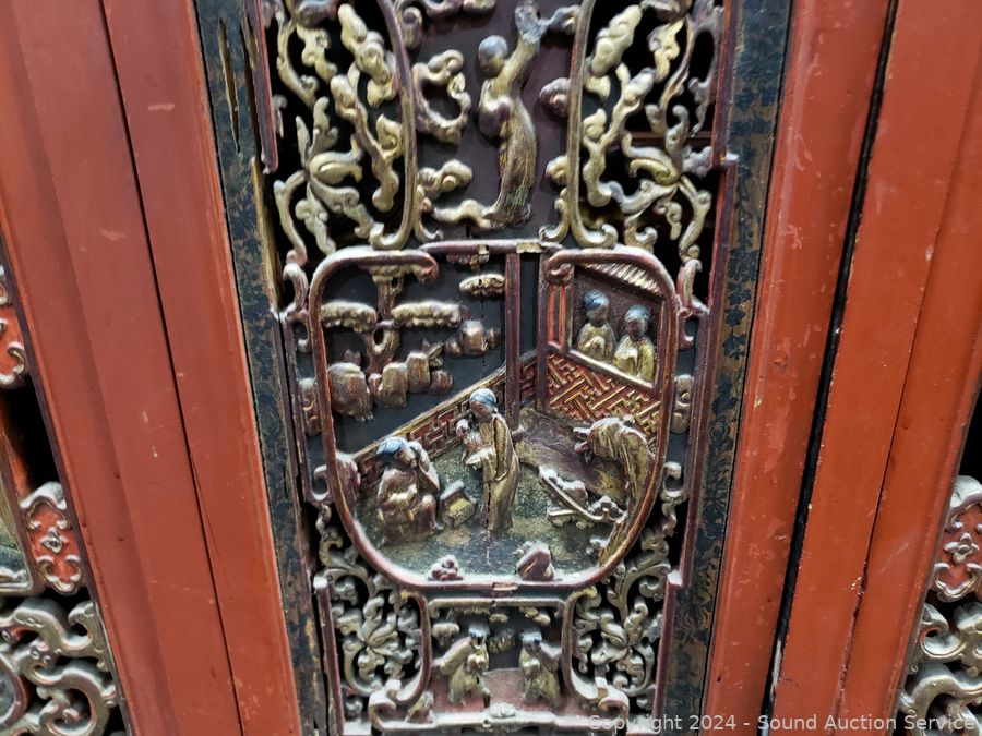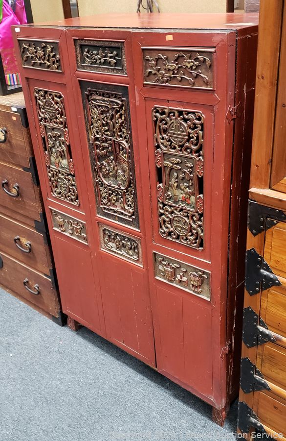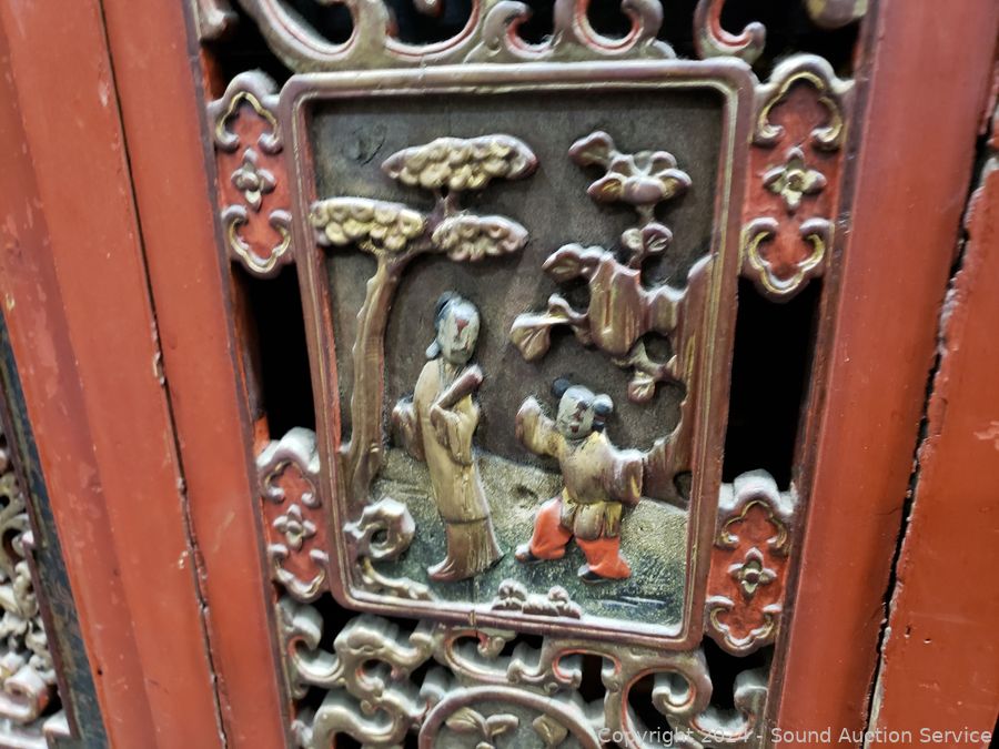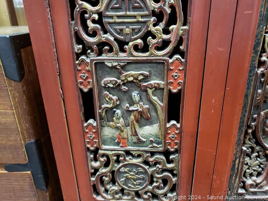 Lot #0007: Antique Carved Pierced Chinese Cabinet