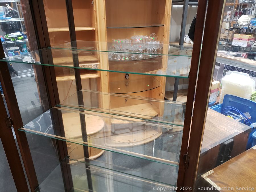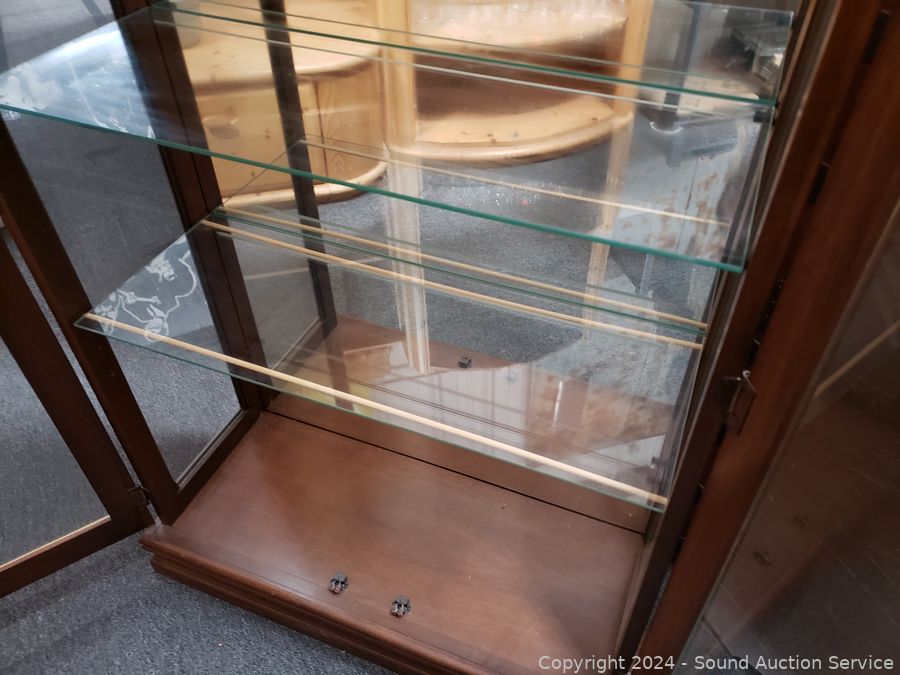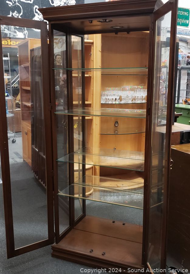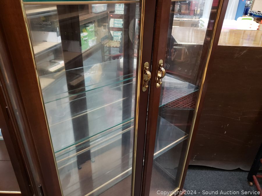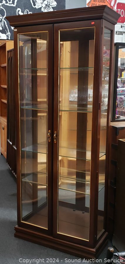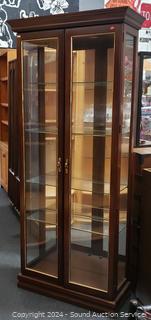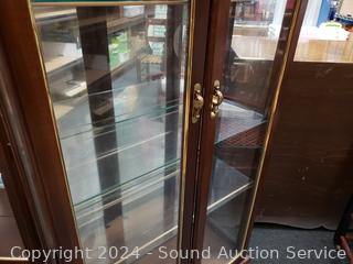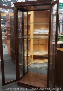 Lot #0017: Cherry Lighted Mirrored Curio Cabinet