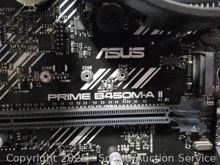 PC has an ASUS Prime B450M-A motherboard, 2 Crucial Ballistic 16GB DDR4 RAM, custom case Ryzen 3 CPU, no hard drive, boots to bios, decent starter PC for a build, no GPU, onboard graphics. LG 27MN60T-W 27" FreeSync 1080p monitor works, Mouse & keyboard work. HP Officejet Pro 8600 Plus All-in-One Printer has power, appears to be functioning as intended.