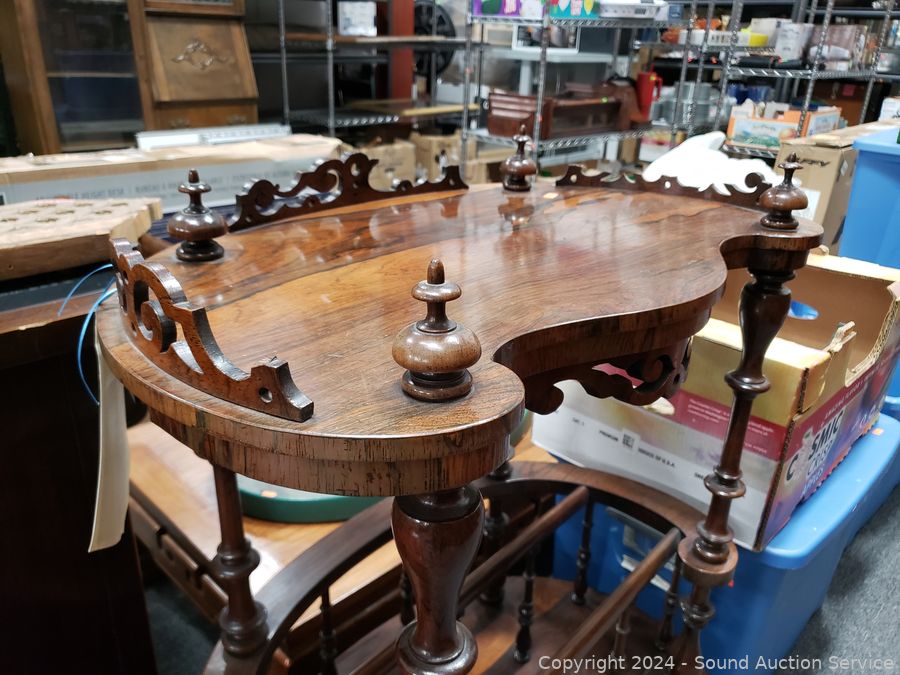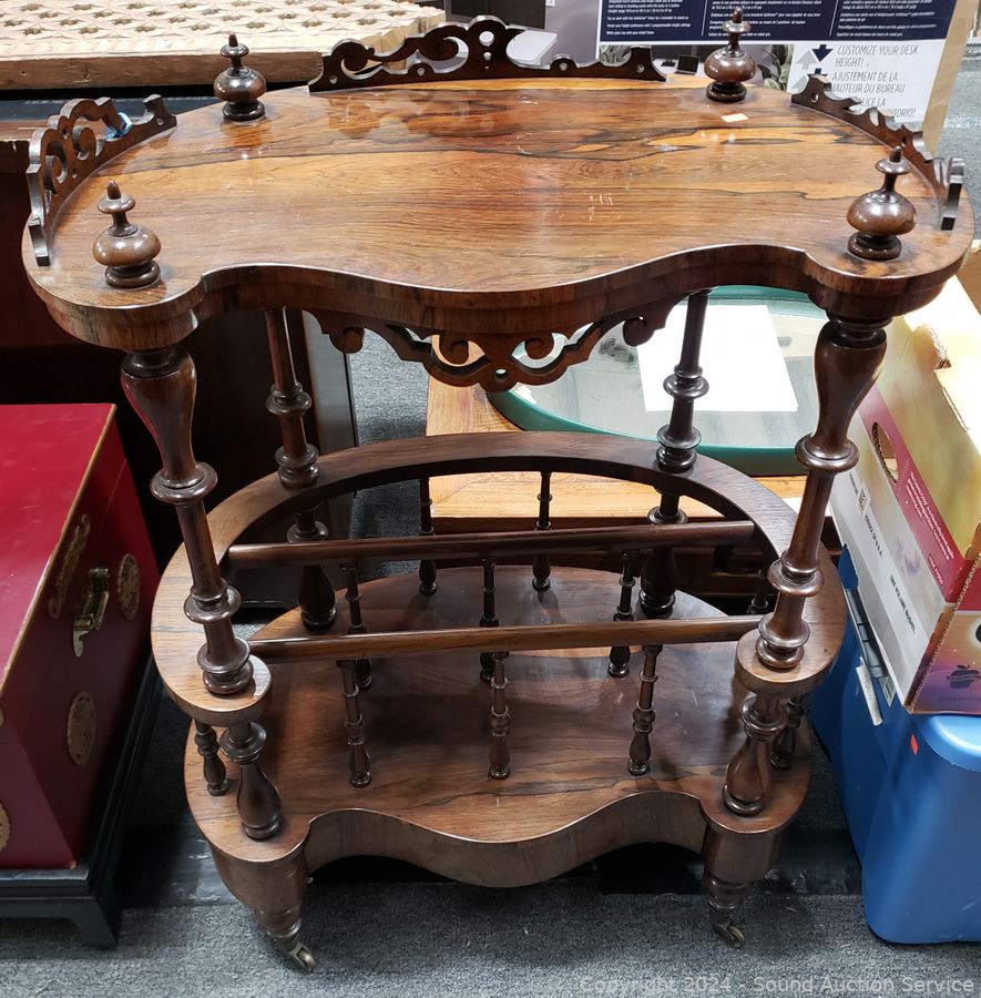319 Lots including Antique Victrola & Brunswick Phonograph Record Players, Rare Mid 19th Century Rosewood Etagere/Canterbury, Asian/Oriental Cabinets/Chests, Cherry Curio Cabinets, Concrete Child Garden Statue, Vintage Quartersawn Oak Granite Top Vanity Wash Station, Shoe Rack, Assorted Jewelry, Watches, Fine Silver Rounds, Fadi India Sterling Ruby Jewelry, Native Mohave Turquoise Jewelry, Assorted Hobby Tools, Hand Tools, Mid-Century Lighted Oak Hutch, Home Improvement, Rugs, Footwear, Kitchen Cookware, Household Goods, Personal Hygiene Products & More!!!