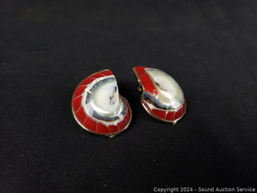 Lot #0056: Sterling & Shell Bracelet, Clip-on Earrings & Pendant