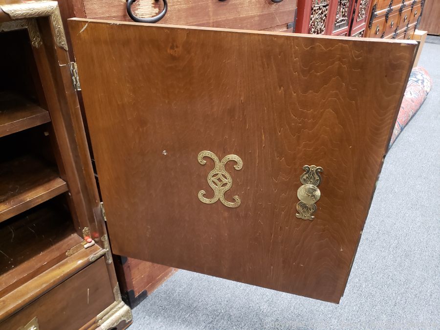 Lot #0009: Vintage Asian Carved Brass Single Drawer Cabinet