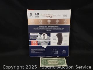 Lot #0231: 2 Copper Fit Elite Compression Knee Sleeves S:S/M,12-16"