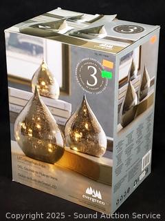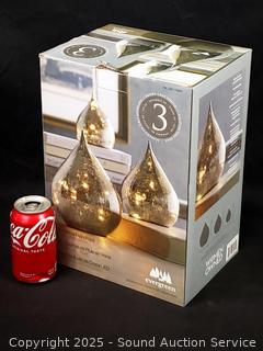 Lot #0181: 3 Evergreen LED Smoky Gray Glass Raindrop Fairy Lights