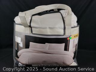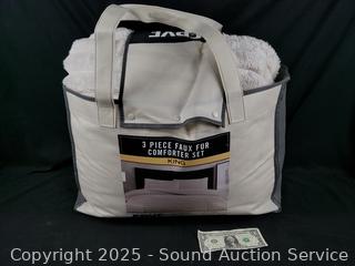 Lot #0059: 3pc Frye Luxe Faux Fur Taupe King Comforter Set
