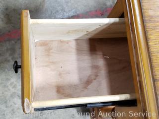Some bubbling, wear to finish. Ball bearing drawer guides. 23" H x 13" W x 22" D.