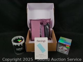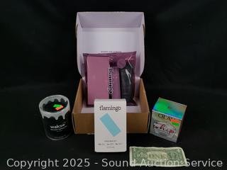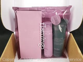 Flamingo shave kit, Face Wax Kit (appear unused), Whip Ultimate Primer Moisturizer (appears full). Refer to photos for more details. Refer to photos for more details.