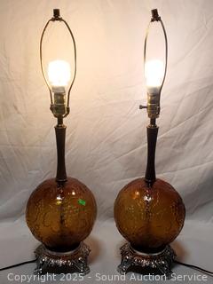 Lot #0179: Pair of Marigold Glass Globe 28" Table Lamps